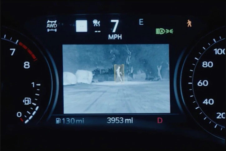 With available Night Vision, infrared sensors locate and notify you of potential hazards up ahead, so you can drive more confidently in the dark.
